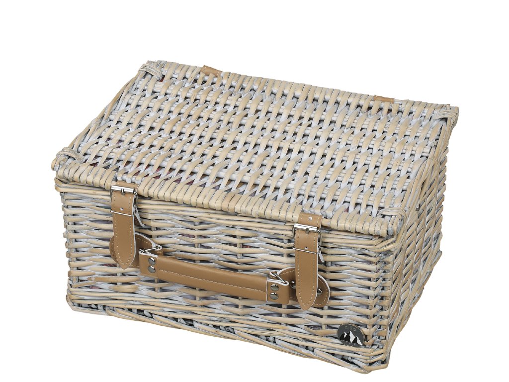 Piknikový šedý proutěný koš TORINO pro 2 osoby obsahuje: