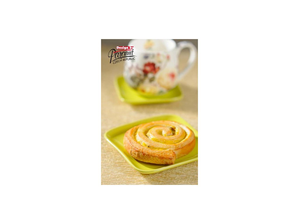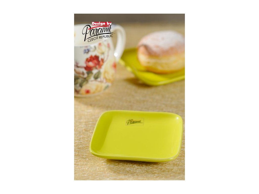 Jemně zelený podnos / talíř na zákusek, chlebíček, jednohubky či na servírování předkrmů o rozměrech 12 x 12 cm. Krásná barva a vysoký lesk těchto servírovacích talířků zajistí, že na vašem stole krásně vyniknou.