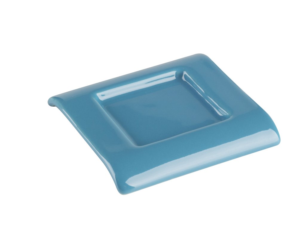 Tyrkysový keramický podtácek ve tvaru čtverce o rozměrech 7,5x7,5 cm a výšky 1 cm je ideální jako podtácek pod čajovou svíčku, ale využijete ho také jako tácek na čajový sáček, lžičku a nebo hrneček.