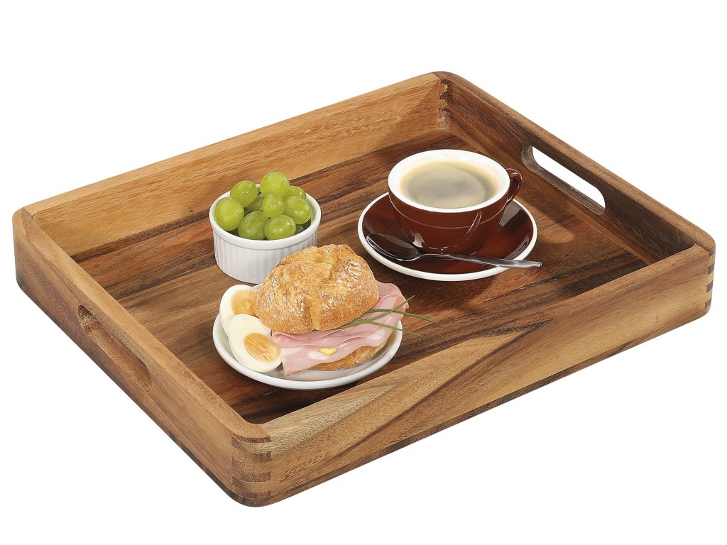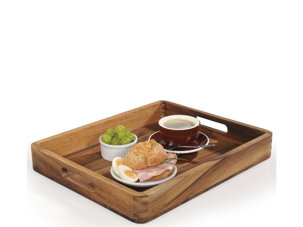 Nádherný velký dřevěný servírovací tác o rozměrech 52x43x6 cm z akátového dřeva od špičkové německé značky Zassenhaus.