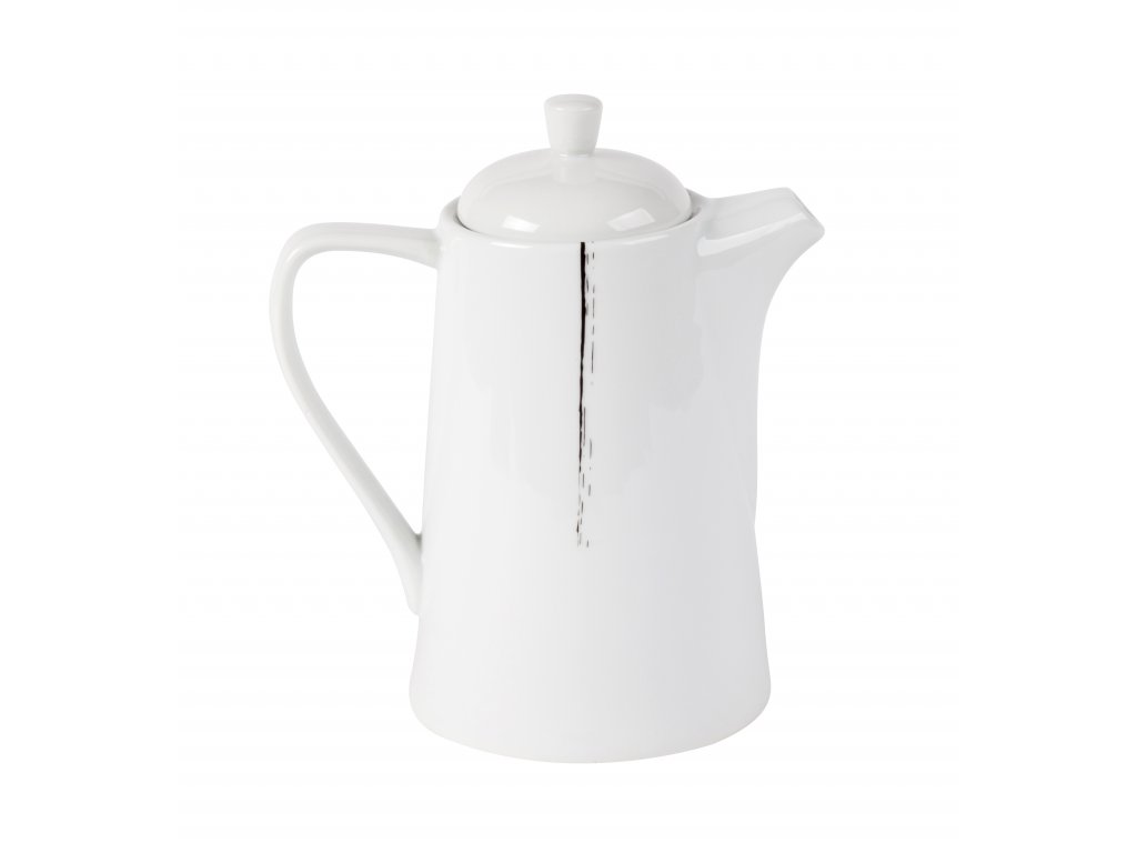Porcelánová konvice na kávu, ale i čaj o objemu 1 l v bílé barvě s nadčasovým černo-bílým motivem v podobě abstraktních černých linek z kolekce porcelánu BRUSH.