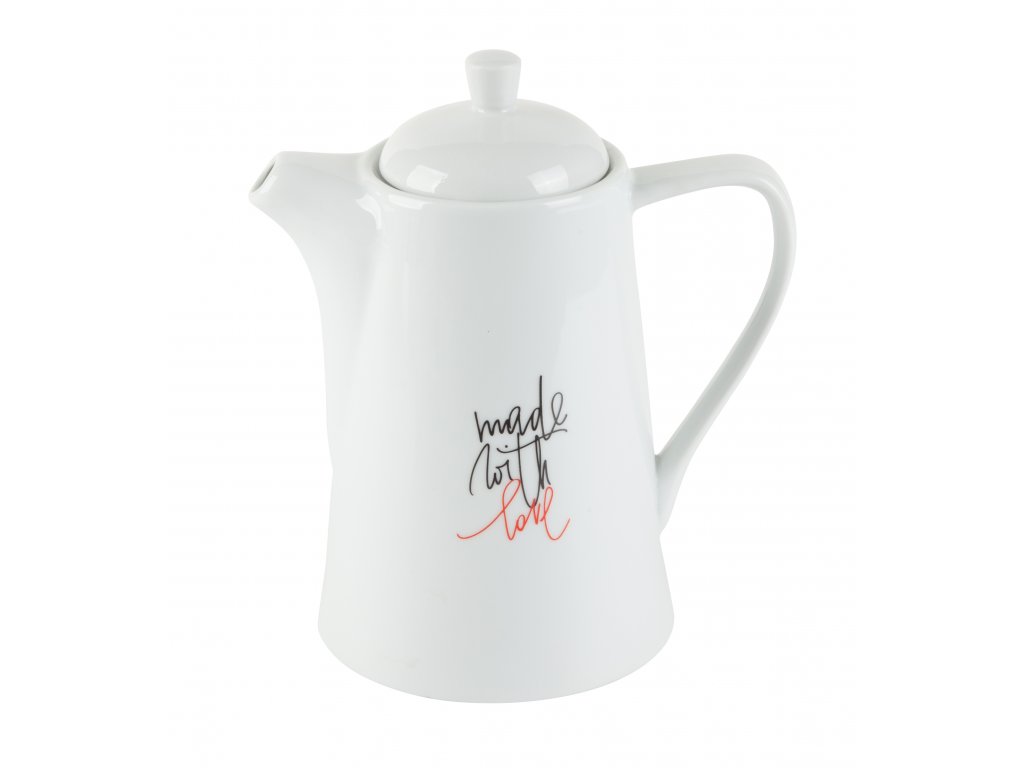 Porcelánová konvice na čaj nebo kávu o objemu 1 l v bílé barvě s oblíbeným motivem made with love z kolekce porcelánu LOVE