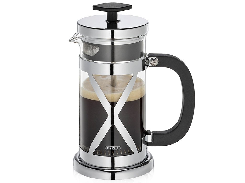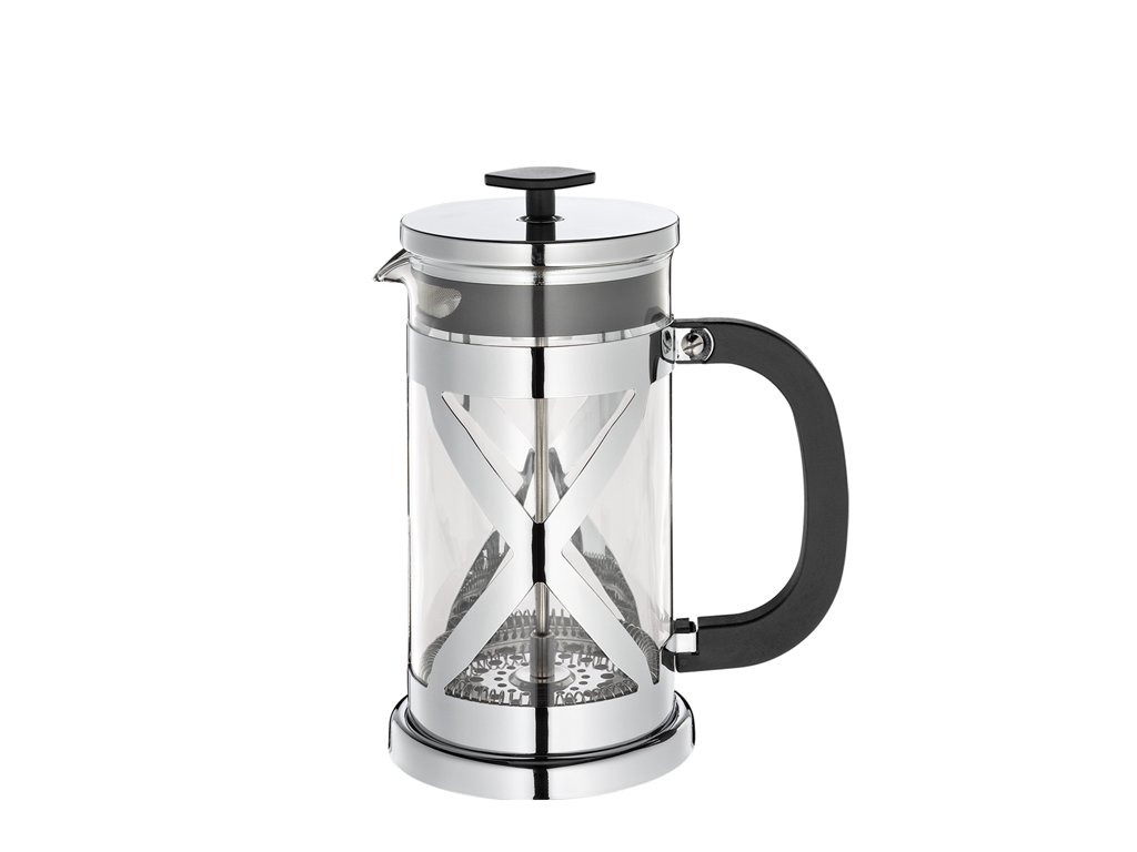 Stlačovací French press z vysoce kvalitní leštěné nerezové oceli a skla. Víko z leštěné nerezové oceli pevně sedí a má velký knoflík, kterým lze snadno přitlačit filtrační tyč. Velká rukojeť z nerezové oceli drží kávovar pevně na svém místě. Skleněná nádoba je vyrobena z borosilikátového skla, a proto je zvláště odolná vůči teplu.