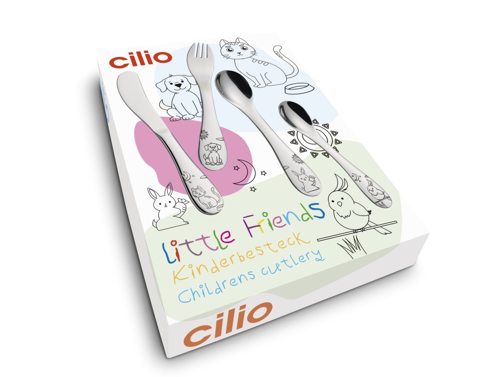 Jsou roztomilí a není potřeba je venčit ani krmit. Místo toho pomáhají chlapcům a holčičkám při jídle zvířátka z dětské sady příborů od Cilio LITTLE FRIENDS. Okouzlující designy na noži, vidličce a lžičkách ze čtyřdílné sady povzbuzují nejmenší k samostatnému stravování a dále rozvíjejí jemnou motoriku. Příbor má tvar s dětskými jemně zaoblenými hranami pro maximální bezpečnost při prvních pokusech o jídlo.
