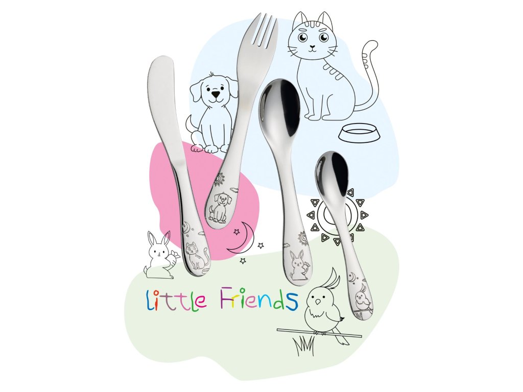 LITTLE FRIENDS Sada dětských příborů 4 ks nerezová ocel