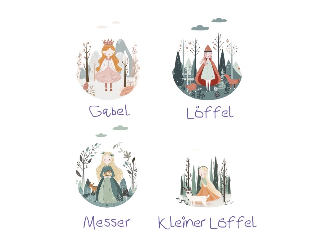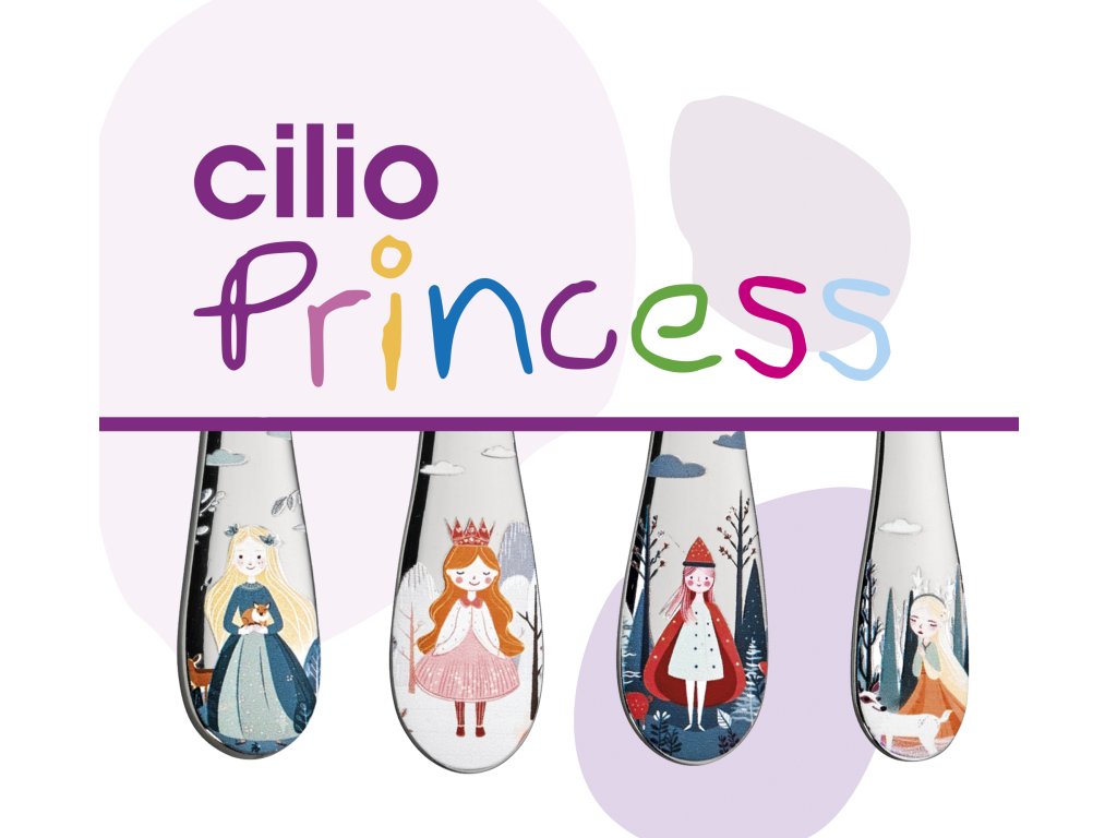 Malé princezny si to zamilují! Ergonomicky tvarovaný dětský příbor PRINCESS od Cilio perfektně padne do rukou. S láskou navržené motivy na rukojetích čtyřdílné sady připomínají oblíbené stránky obrázkových knih. Nůž, vidlička a dvě lžíce jsou extra široké a pohodlné pro malé ručičky.