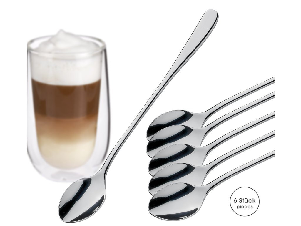 ROMA Stylová a elegantní lžička na Latté Macchiato z leštěného nerezu - sada 6 ks.