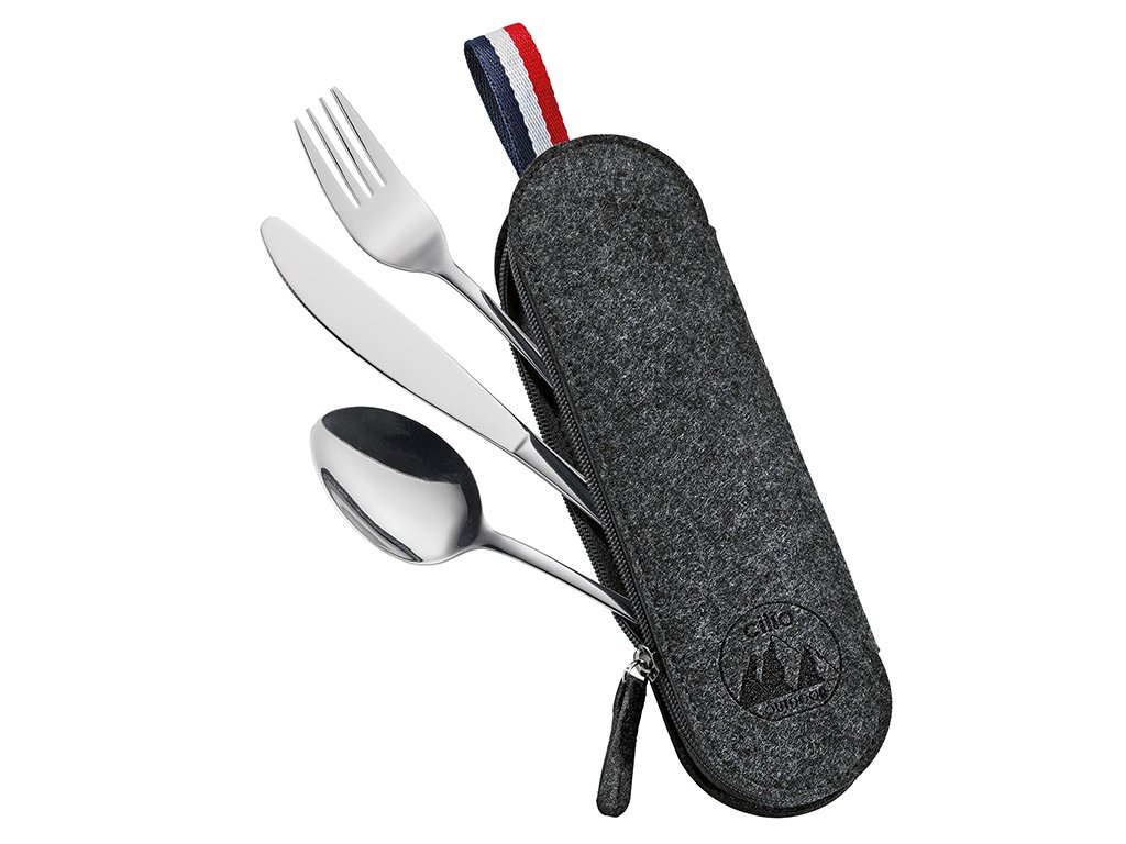 Sada cestovních nerezových příborů 3 ks - lžíce, vidlička, jídelní nůž od špičkové německé značky Cilio.