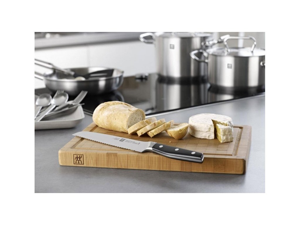 Bambusové krájecí prkénko o rozměru 36 x 25 x 3 cm od německé značky Zwilling J.A. Henckels. Bambusová prkénka značky ZWILLING jsou nejen krásná na pohled, ale i velmi praktická. Díky antibakteriálním látkám, které bambus obsahuje, jsou dokonalým pomocníkem v kuchyni. Obě strany prkénka můžete použít pro krájení: ovoce a zeleniny, masa, ryb nebo pečiva. Po použití doporučujeme pouze ruční mytí teplou vodou a čistícím prostředkem, nejlépe otření vlhkým hadříkem a poté vytření dosucha. Prkénko je vždy dobré nechat doschnout ve vzpřímené poloze.