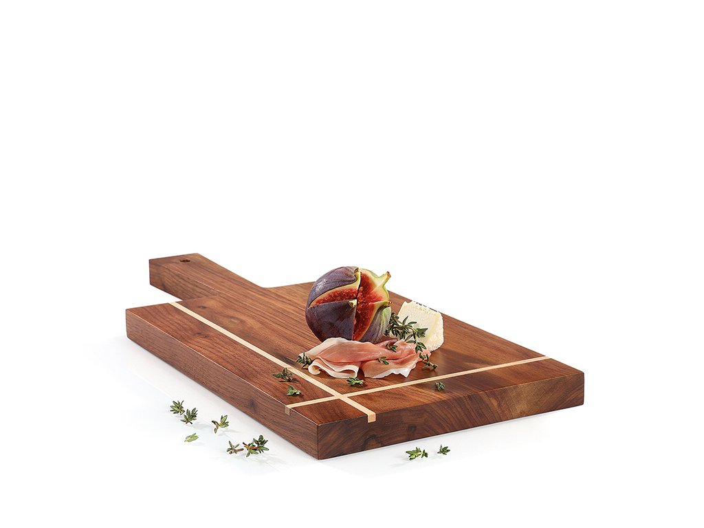 Prkénko vyrobené z tmavého, výrazného ořechového dřeva protínají dvě řady světlého, jemného javorového dřeva. Výběrem materiálů Zassenhaus kombinuje eleganci a modernost. Stylový design zve k vyzkoušení servírovacích prkýnek s ušlechtilými pochoutkami. Prkénka ze dřeva jsou nejen atraktivní, ale také velmi praktická, protože jsou trvanlivá a zajišťují pohodlné řezání. Všechno dřevo používané pro výrobu špalků a prkének Zassenhaus pochází z vybraných oblastí, a je zpracováno s největší péčí. Dřevo je přírodní materiál, takže každý produkt má jedinečnou barvu a strukturu. Použitý materiál je šetrný k životnímu prostředí s vysokou tvrdostí, přitom je jemný k nožům.