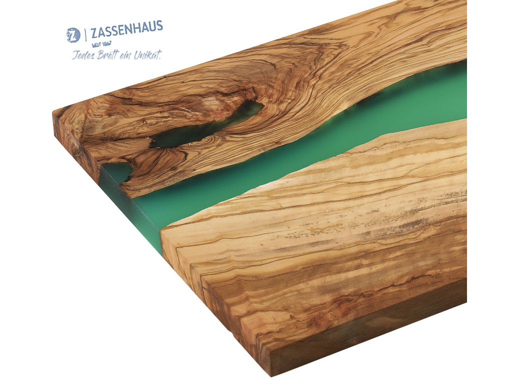 Ručně vyráběné servírovací prkénko z luxusního olivového dřeva a barvené modré pryskyřice, která je bezpečná při styku s potravinami od špičkové německé značky Zassenhaus....