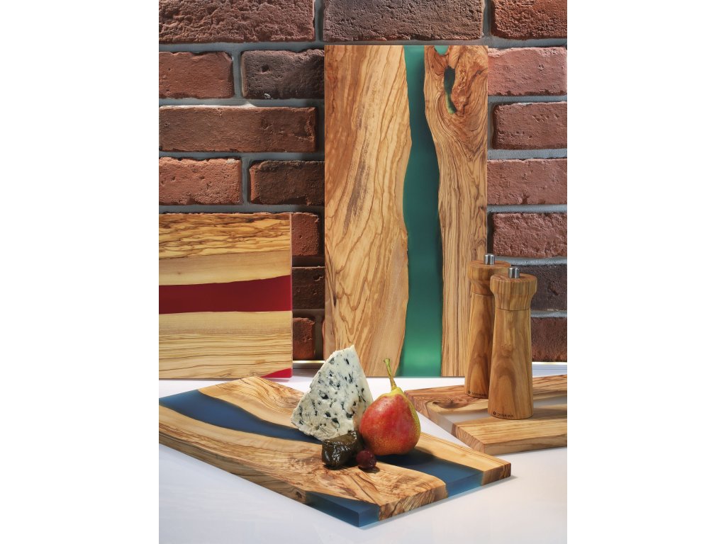 Olivové prkénko s barvenou pryskyřicí si můžete vybrat v těchto barvách: červené, zelené, modré a průhledné.