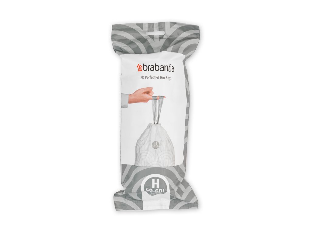 Igelitové pytle do odpadkových košů o objemech 50 - 60 l od Brabantia - typ H mají v roli 20 ks a jsou navržený přímo na míru vašeho odpadkového koše Brabantia. Pytle jsou vyrobeny z kvalitního plastu (HDPE - high density polyethylen) a jsou opatřeny stahovací páskou, díky níž je manipulace snadná. Jednoduše pytel do koše vložíte a zase vyjmete.