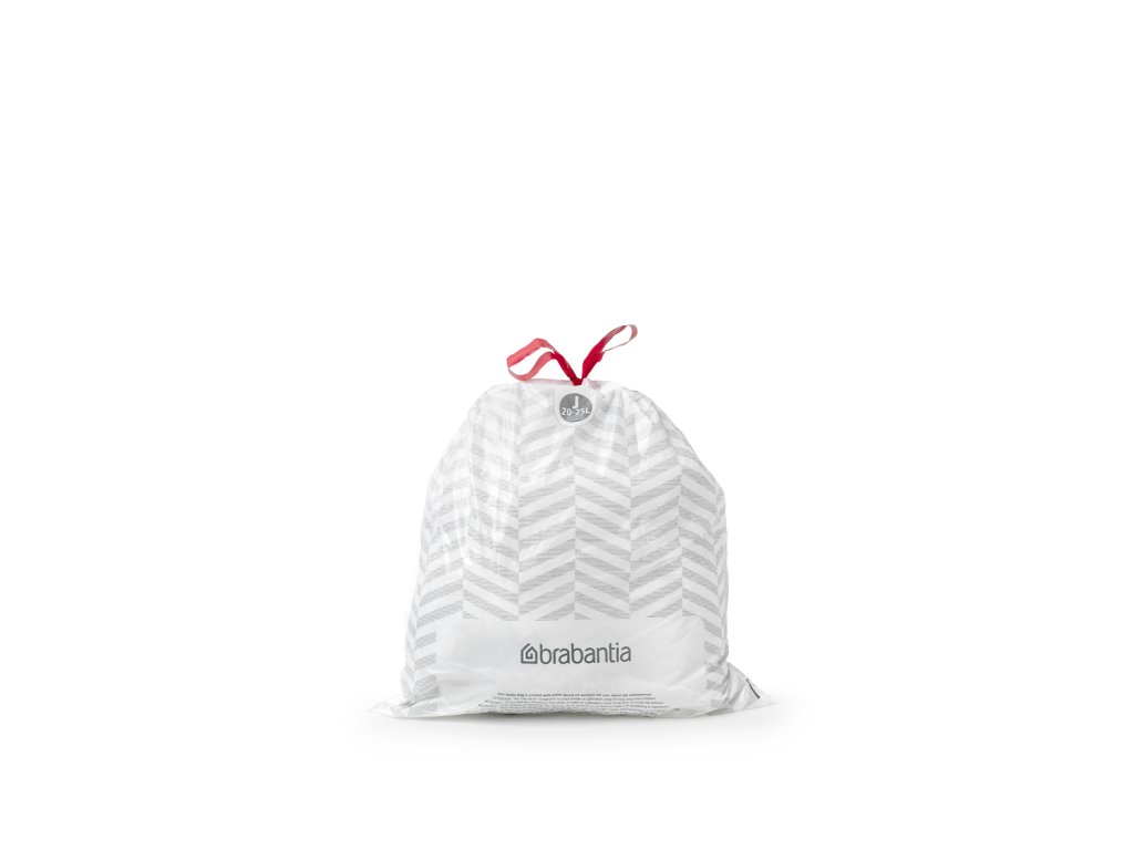 Igelitové pytle do odpadkových košů o objemech 23 l od Brabantia - typ J mají v roli 20 ks a jsou navržený přímo na míru vašeho odpadkového koše Brabantia. Pytle jsou vyrobeny z kvalitního plastu (HDPE - high density polyethylen) a jsou opatřeny stahovací páskou, díky níž je manipulace snadná. Jednoduše pytel do koše vložíte a zase vyjmete. Pytle jsou určeny nejen pro odpadkové koše 23 l, ale 20-25 l. 23 l typ J - je původní značení. Nové značení je typ J - 20-25 l.