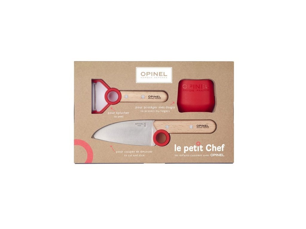 Dětský kuchařský set Opinel je praktickou pomůckou, jak naučit malé kuchařské pomocníky správným a bezpečným návykům při používání nožů a škrabek.