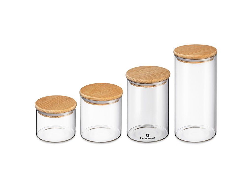 Velmi praktická, stohovatelná dóza na skladování potravin z borosilikátového skla a s uzávěrem z bukového dřeva o objemu 350 ml je tím pravým pomocníkem pro skladování těstovin, rýže, koření, bylinek a dalších přísad pro vaření.