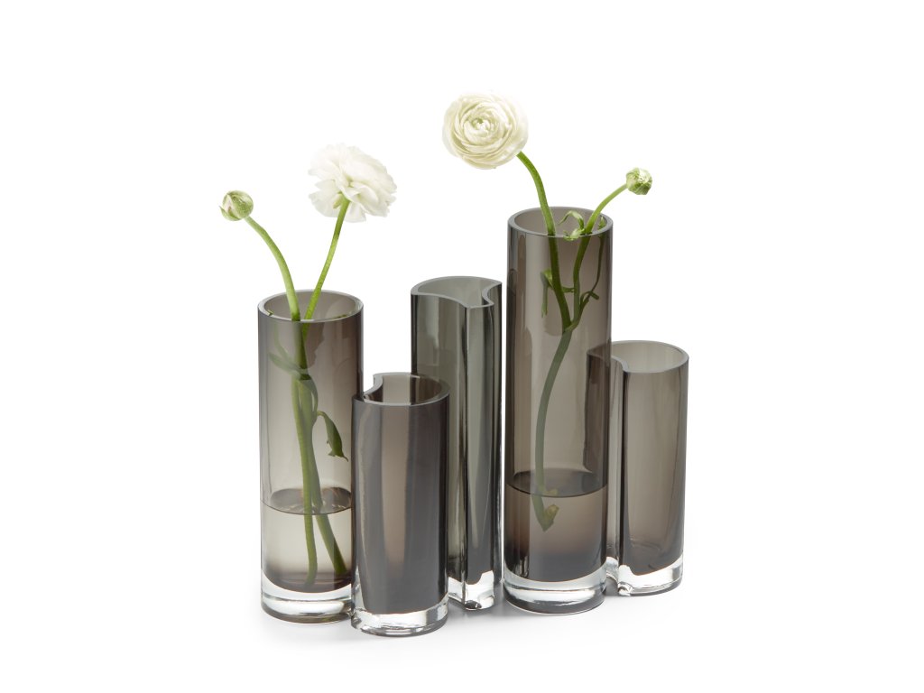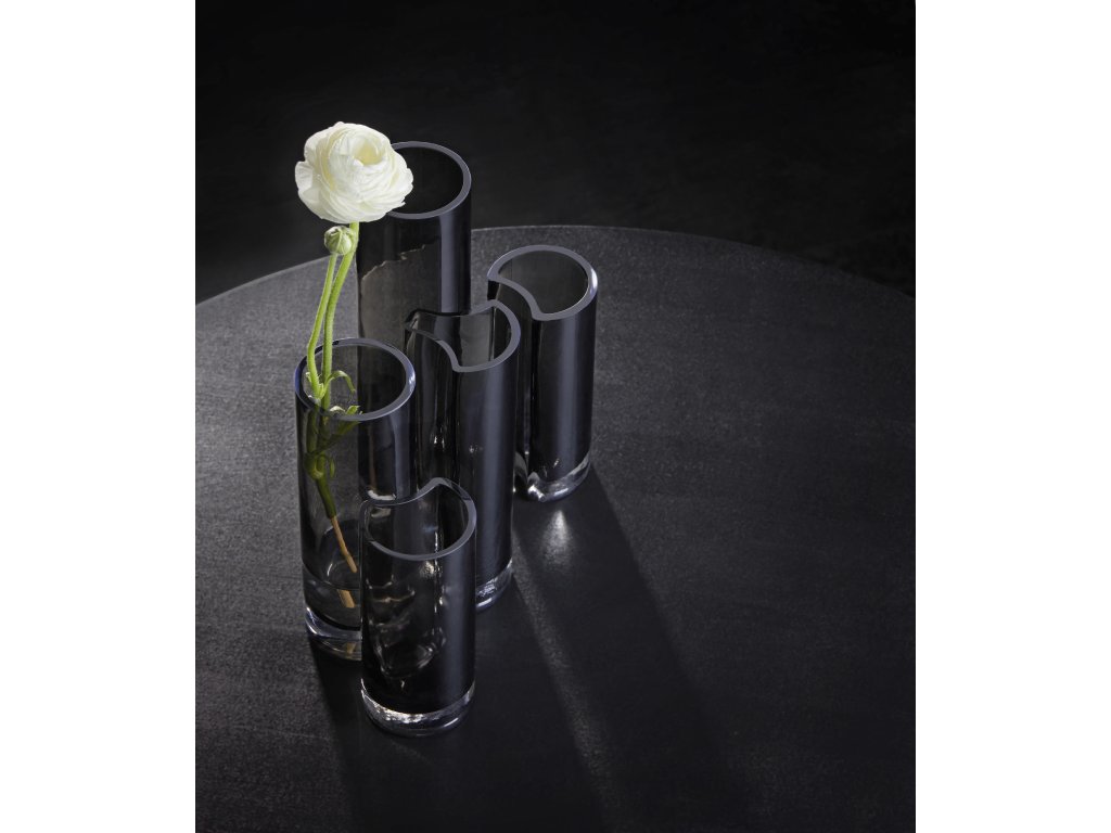 Vázy jsou vyrobeny z extra silnostěnného skla, jsou ručně foukané a zbarvené do tajemné kouřově šedé. Každá váza má svůj jedinečný, zakřivený tvarem, který dokonale ladí s ostatními. Díky této harmonické kombinaci vázy vypadají, jako by byly stvořeny jedna pro druhou, a u vás doma vykouzlí fascinující soubor.