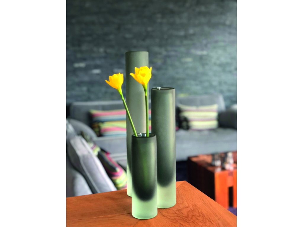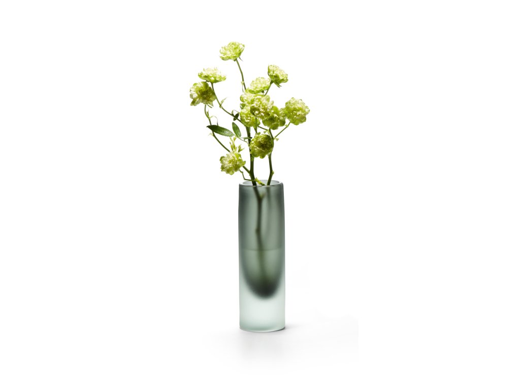Na první pohled vás váza NOBIS, výšky 20 cm jednoznačně zaujme. Je vyrobená ručně metodou foukaného satinovaného skla. (sklo vyleptané kyselinou je matné, průsvitné ale neprůhledné). Úzká válcovitá váza je ideální pro jednotlivé květiny, větvičky nebo umělé listy. Je vhodná do každého interiéru. Má krásnou šedozelenou barvu a váza je i na svůj úzký profil stabilní.