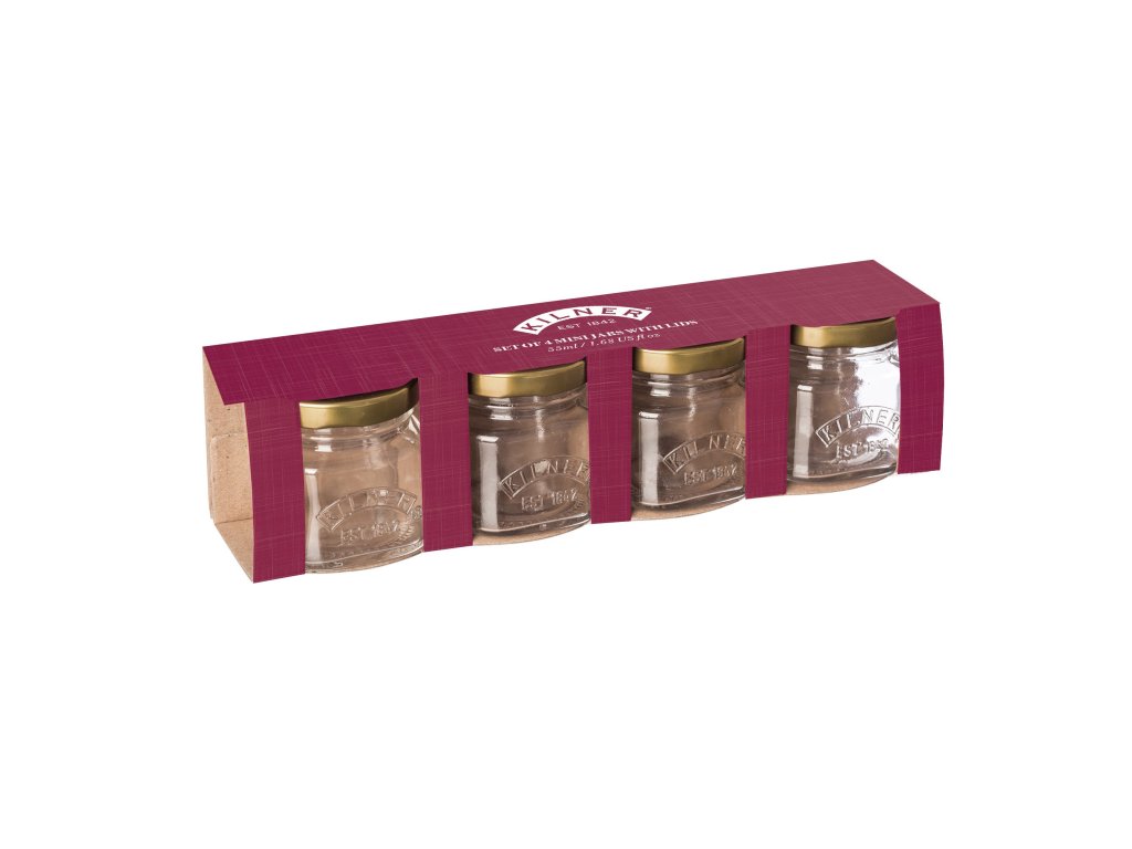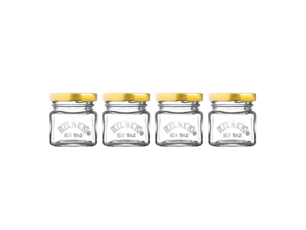 Sada 4 ks skladovacích sklenic je ideální pro uchovávání potravin. Jednodílné víko s potiskem zajišťuje vzduchotěsné uzavření, aby obsah zůstal déle čerstvý. Kapacita nádoby 55 ml je ideální velikost pro uchovávání sušených potravin, jako jsou bylinky, koření, sůl a paprika. Každá sklenice ztělesňuje tradiční styl Kilner.