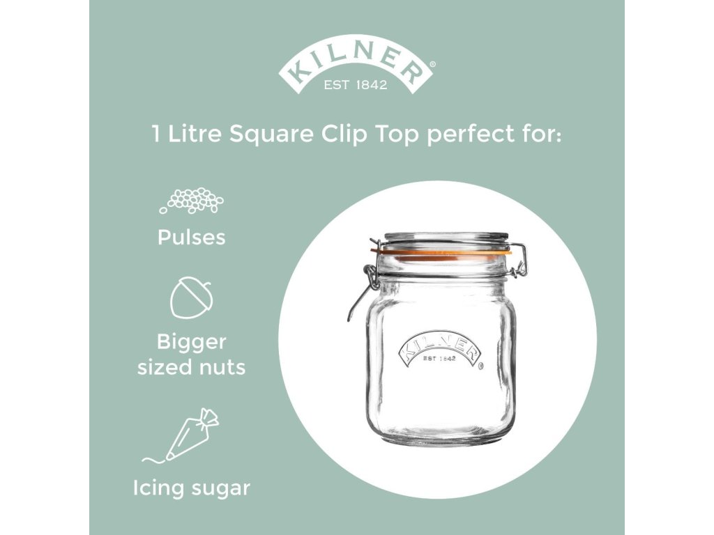 Skleněná zavařovací sklenice je ideální pro uchovávání potravin. Obsahuje vysoce kvalitní klipový systém z nerezové oceli, navržený tak, aby vytvářel dokonalé napětí a pokaždé poskytoval vzduchotěsné a bezpečné utěsnění. Kapacita nádoby je 1 l, pro uchování velkých dávek celého ovoce a zeleniny a skladování suchých potravin, jako jsou cereálie, čočka, těstoviny a sušenky. Perfektní je i nakládání kvašáků, utopenců a sýrů. Každá sklenice ztělesňuje tradiční styl Kilner s autentickým vyraženým logem.