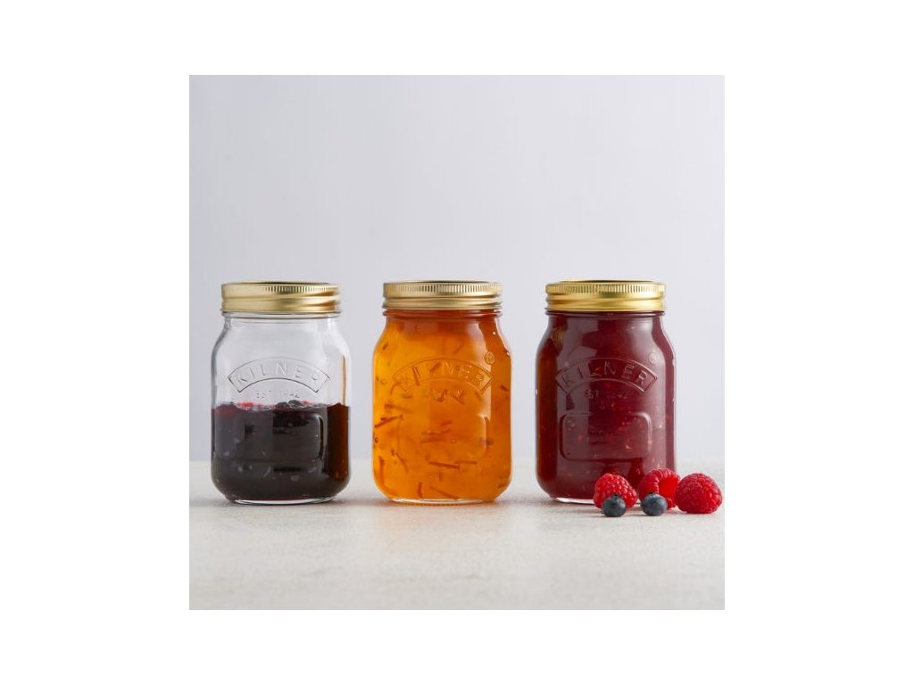 Skleněná zavařovací sklenice je ideální pro uchovávání potravin. Systém víka, se skládá z cínového kotouče a šroubovacího pásku, které zajišťují bezpečné vakuové utěsnění a udrží obsah déle čerstvý. Kapacita nádoby 500 ml, což je ideální velikost pro přípravu džemů, želé a chutney. Každá sklenice ztělesňuje tradiční styl Kilner s autentickým vyraženým logem a uvnitř obsahuje podrobný návod.