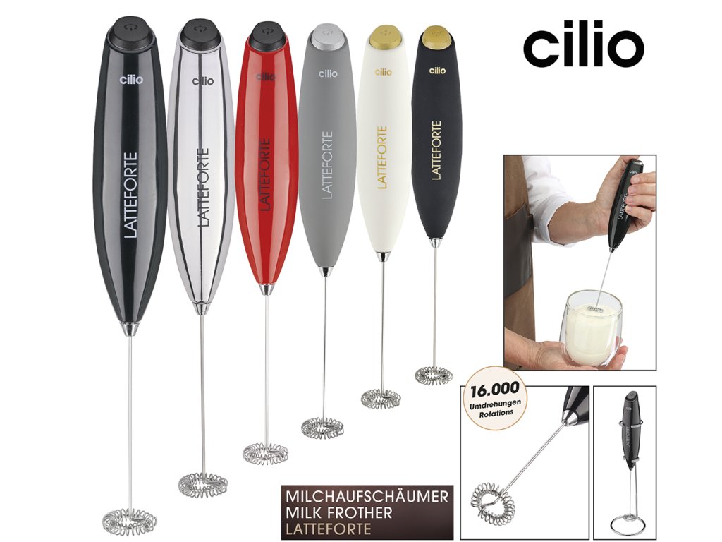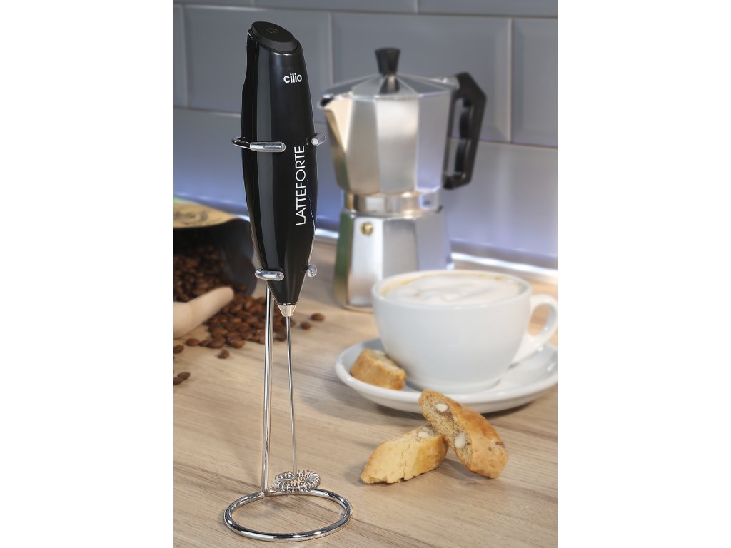 S černým šlehačem mléka LATTEFORTE v matném provedení od německé firmy Cilio můžete rychle a snadno vytvořit pěnu pro své oblíbené nápoje, jako jsou capuccino, latté macchiato nebo horkou čokoládu. Šlehač pracuje s mlékem bez ohledu na jeho obsah tuku.