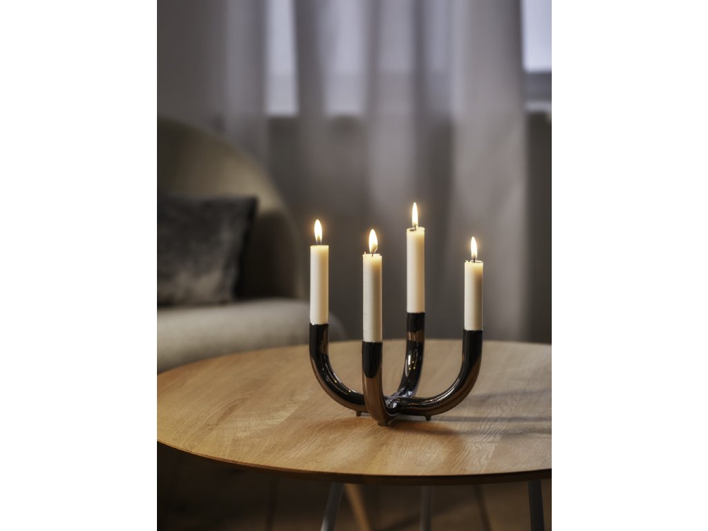 Svícen je vyroben z nerezové oceli, což mu dodává vhodnou stabilní a bezpečnou základnu. Tmavý povrch ho povyšuje na vyšší designovou úroveň a přitahuje pozornost při večeřích při svíčkách. Okouzlující pohled, který si už nechcete nechat ujít při slavnostních příležitostech.