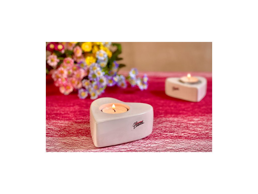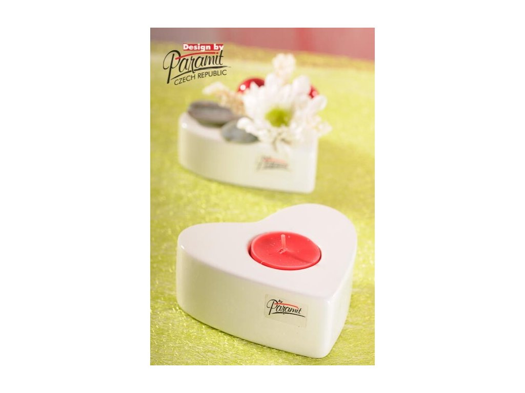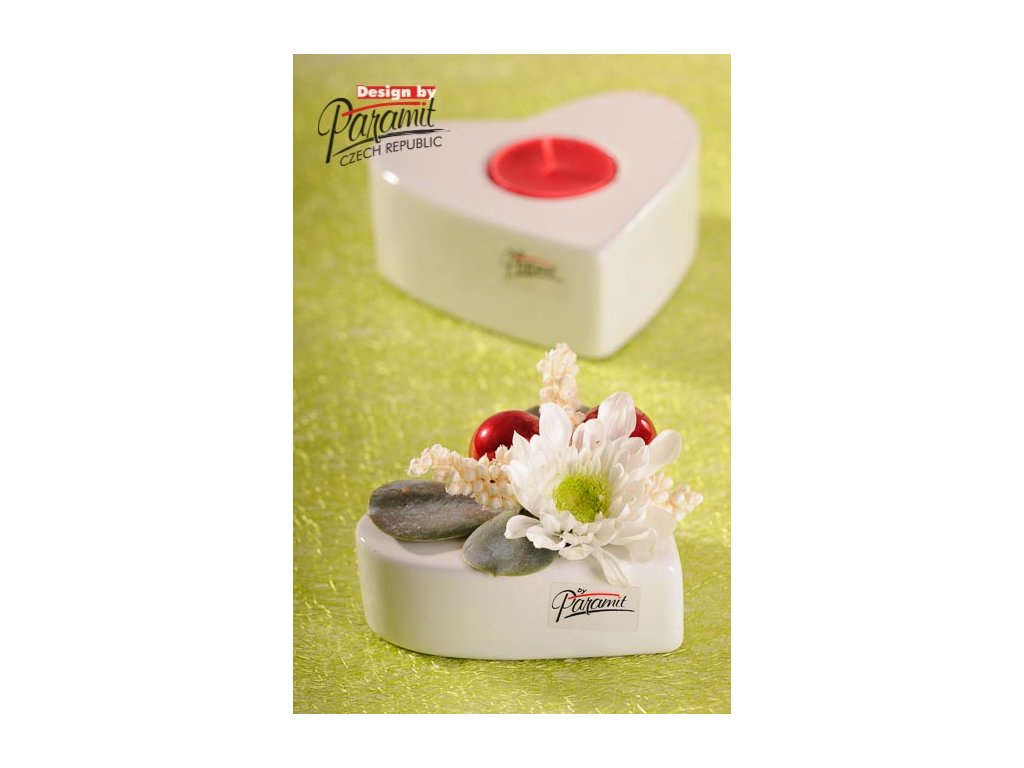 SRDCE Něžný porcelánový svícen na čajovou svíčku výšky 12 cm od špičkové české značky Paramit.