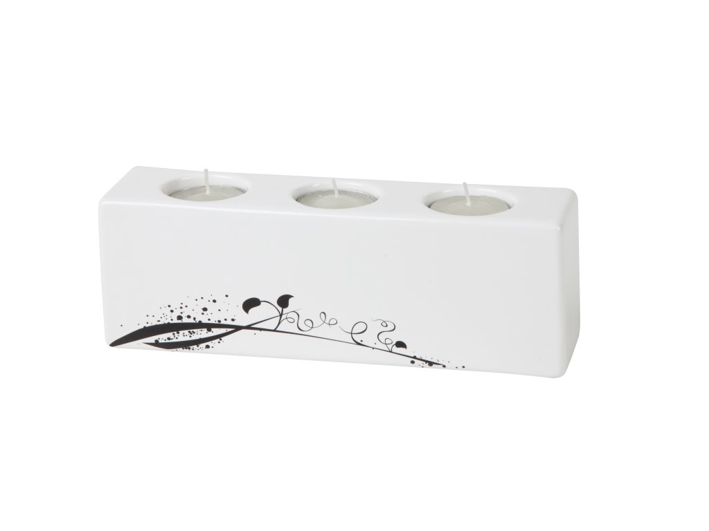 Keramický svícen hranatý na 3 čajové svíčky 22x8x6 cm z kolekce BLACK od české značky by inspire. Má jemný černý dekor na bílém podkladu a skvěle doplňuje kolekci porcelánu BLACK.