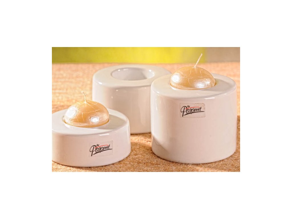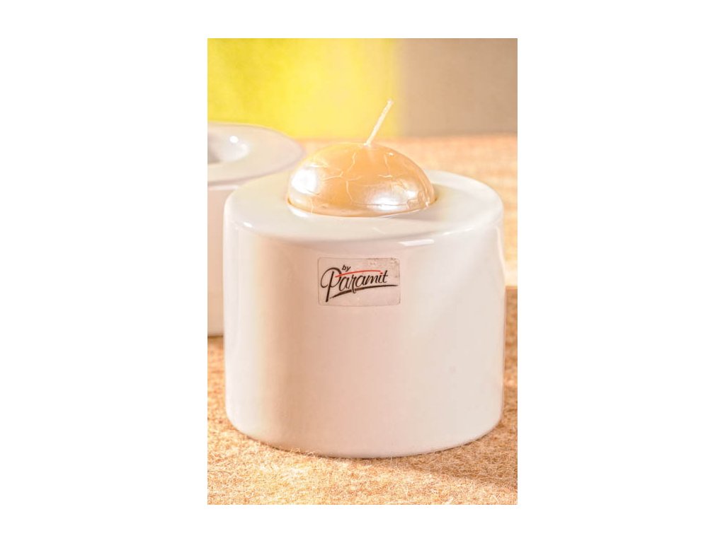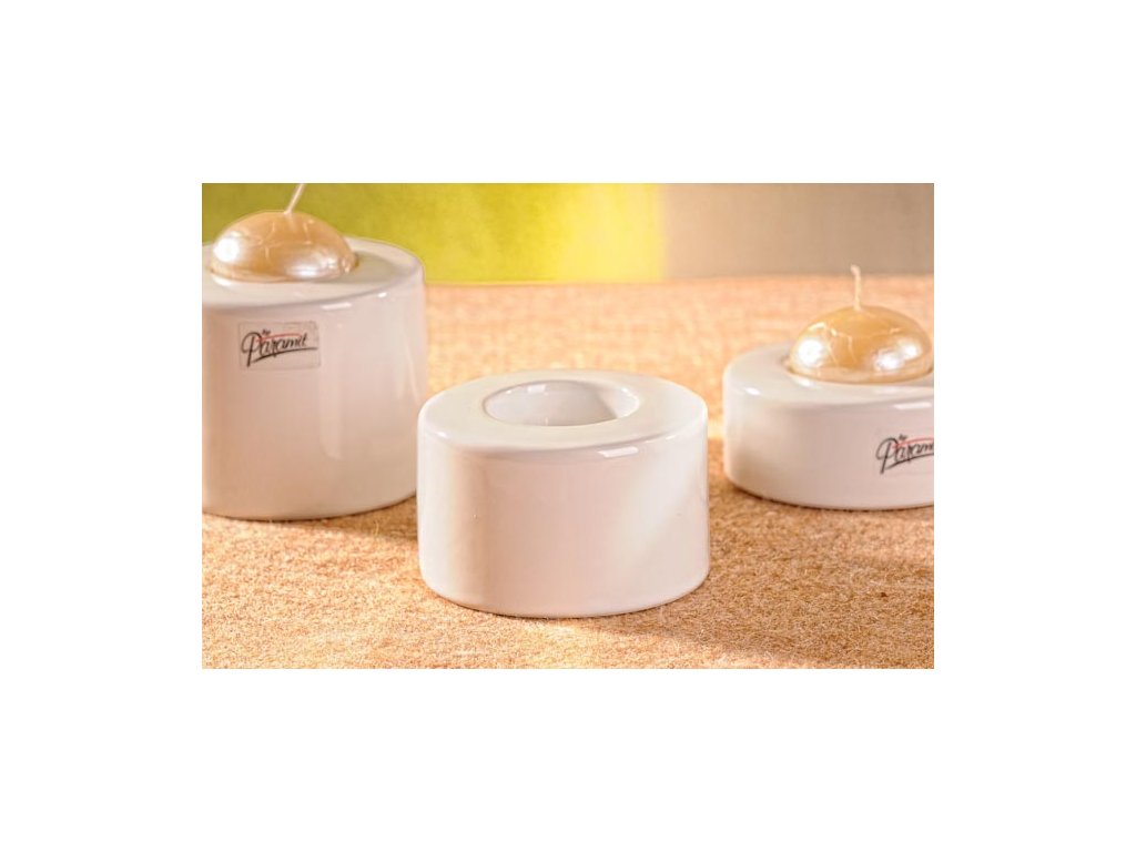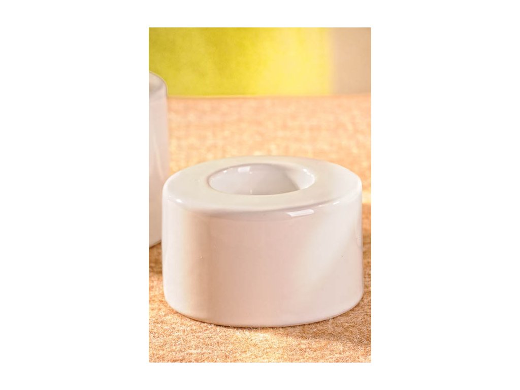 Porcelánový svícen o průměru 8,5 cm a výšce 7 cm v bíle barvě s krásně lesklou glazurou. Je výrazným a zajímavým prvkem, který okamžitě upoutá svou pozornost. Do svícnu můžete vložit čajovou svíčku 3,5 cm a nebo delší rovnou svíčku.