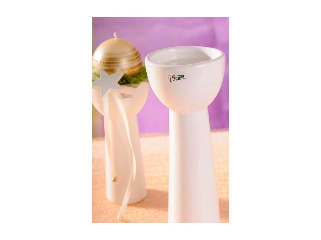 Tia svícen vyrobený z porcelánu. Vysoký je 24 cm a průměr na svíčku měří 8,5 cm. Hezky v něm bude vypadat svíčka ve tvaru válečku, kuličky, ale stejně dobře v něm bude vypadat i vysoká čajová svíčka. Tvoří velmi hezkou dekoraci.