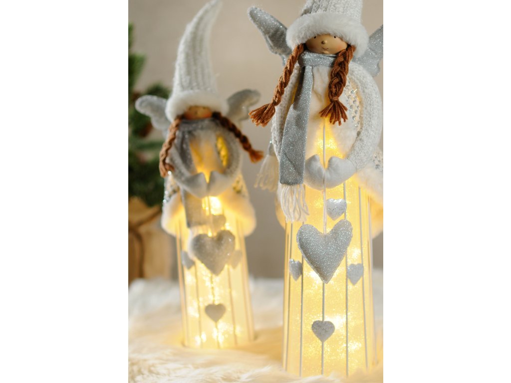 Anděl Kulišák v krásné bílé barvě a výšky 63 cm velmi krásně svítí. Protože je o něj velký zájem, rozhodli jsme se jej znovu zařadit do nabídky a v našem sortimentu se objevuje již po třetí.