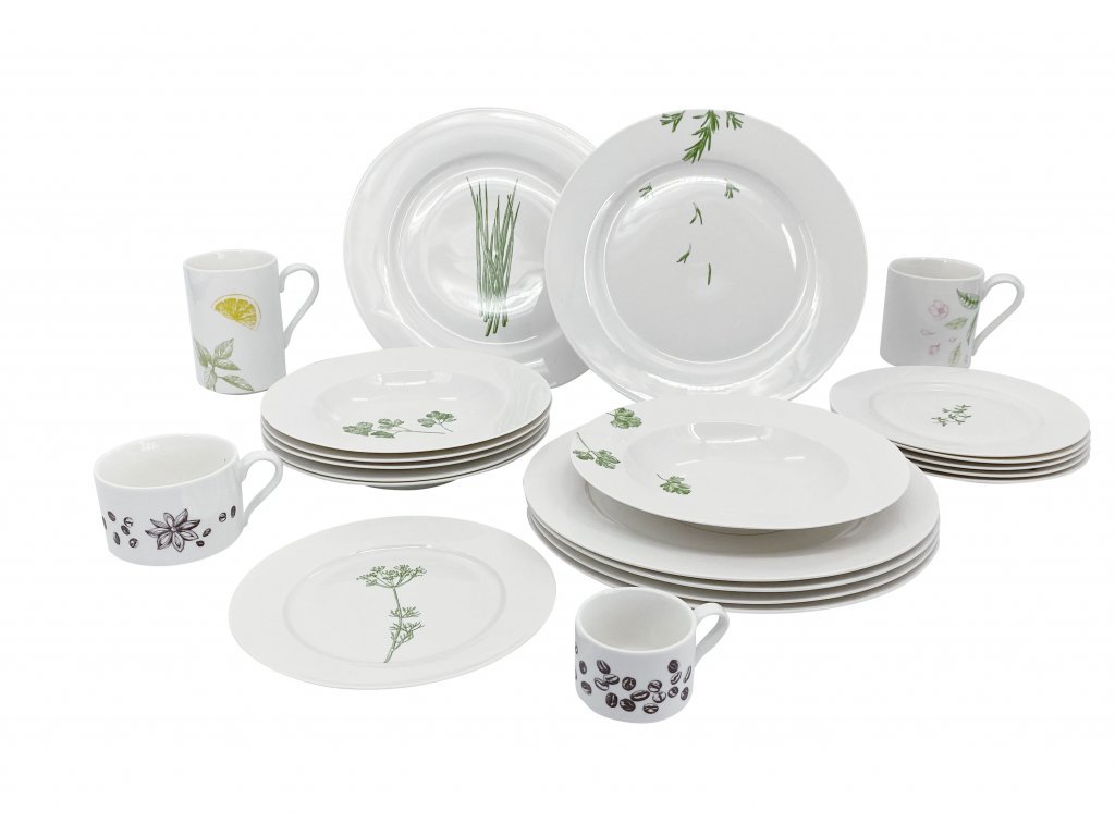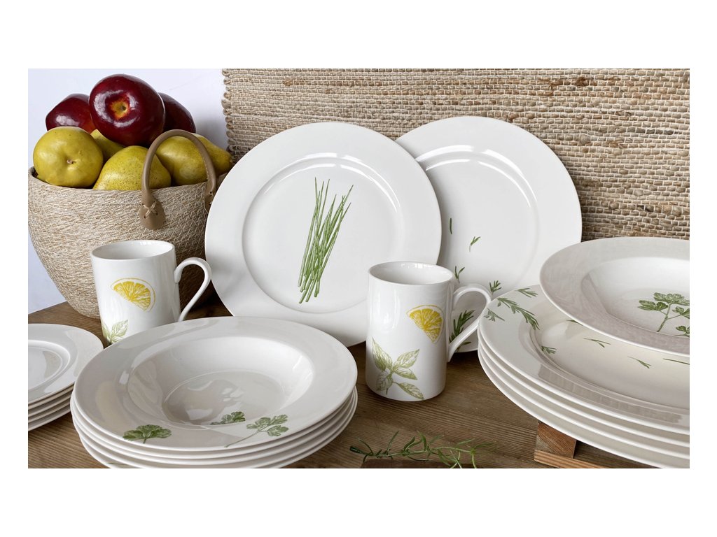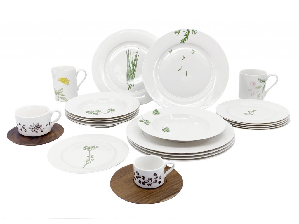 Kolekce porcelánu SPICE od české značky by inspire je tvořena bílým porcelánem s motivy koření. Tuto kolekci porcelánu tvoří také dezertní talíře s motivem tymiánu nebo kopru, jídelní talíře s motivem pažitky nebo rozmarýnu a nesmí chybět ani talíře na polévku s motivem petržele ve dvou provedeních. Důležitým doplňkem jsou také hrnečky, které si můžete vybrat podle svého vkusu. Talíře si můžete také zakoupit namíchané v jídelní soupravě, která má 18 ks.