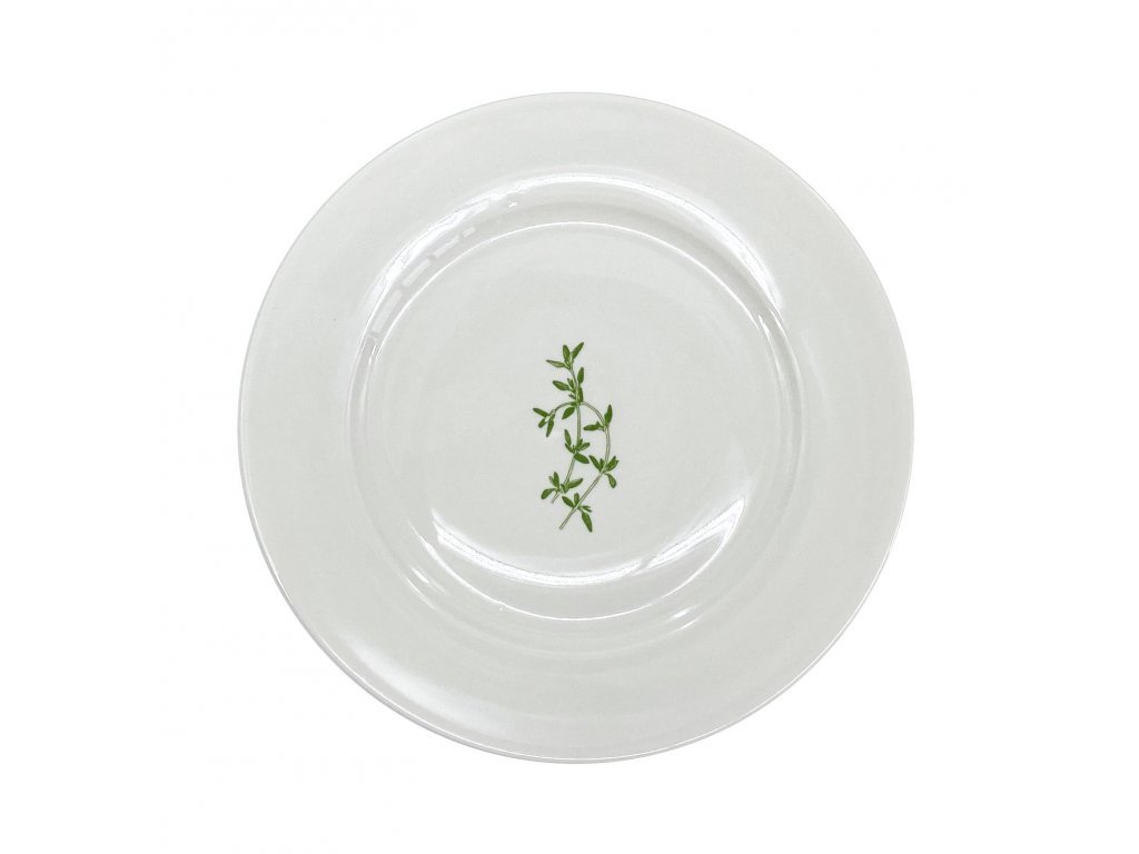Porcelánový bílý talíř na dezert s motivem zeleného tymiánu o průměru 19,5 cm z kolekce porcelánu SPICE má krásnou lesklou glazuru. Porcelánový talíř můžete používat v myčce i mikrovlnné troubě. Skvěle se hodí pro domácí každodenní použití i pro slavnostní příležitosti.