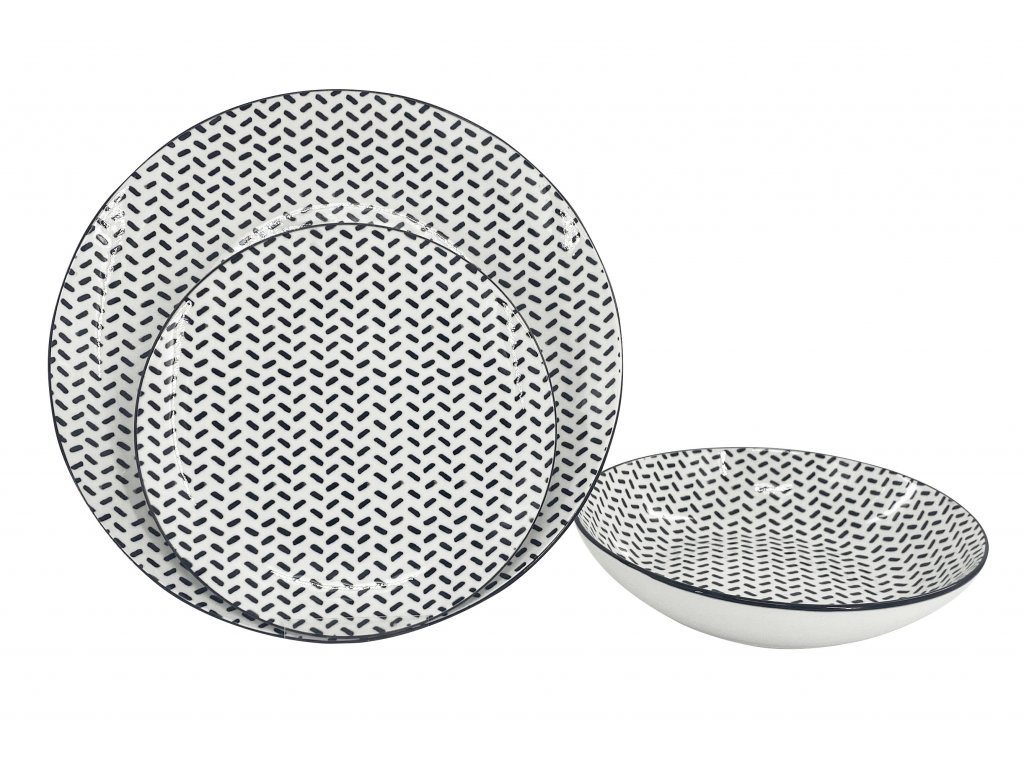 Kolekce porcelánu BLACKLINE je moderní a hodí se do každé kuchyně. Kombinuje oblíbené nadčasové barvy - bílou a černou. Jednoduchý a výrazný černý dekor na bílém porcelánu je zvýrazněný černým okrajem. Můžete si vybrat ze čtyř typů dekorů, a jsou to: puntíky, čárky, stromek a káry. Porcelánové nádobí BLACKLINE nabízí jídelní, dezertní a polévkové talíře. Důležitou součástí jsou také dva druhy misek - miska 570 ml a miska 260 ml. Bez dvou druhů hrnečků - na čaj i kávu by nebyla kolekce porcelánů úplná.