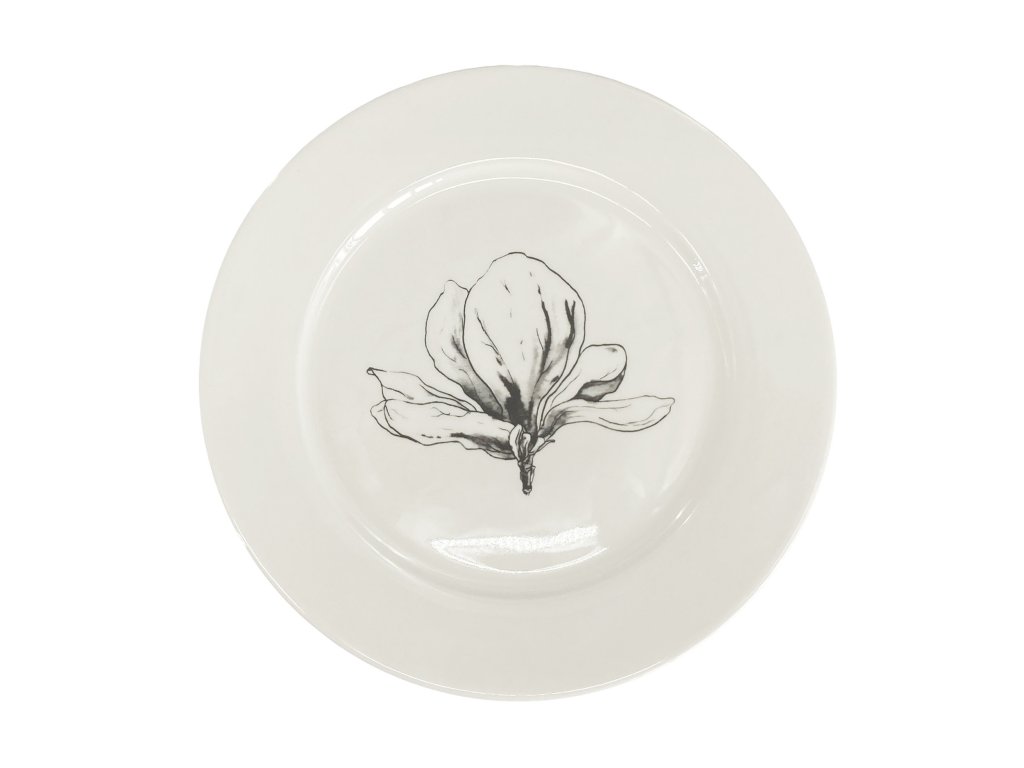 FINE TWIG Jídelní mělký talíř 27 cm bílý s magnolíí