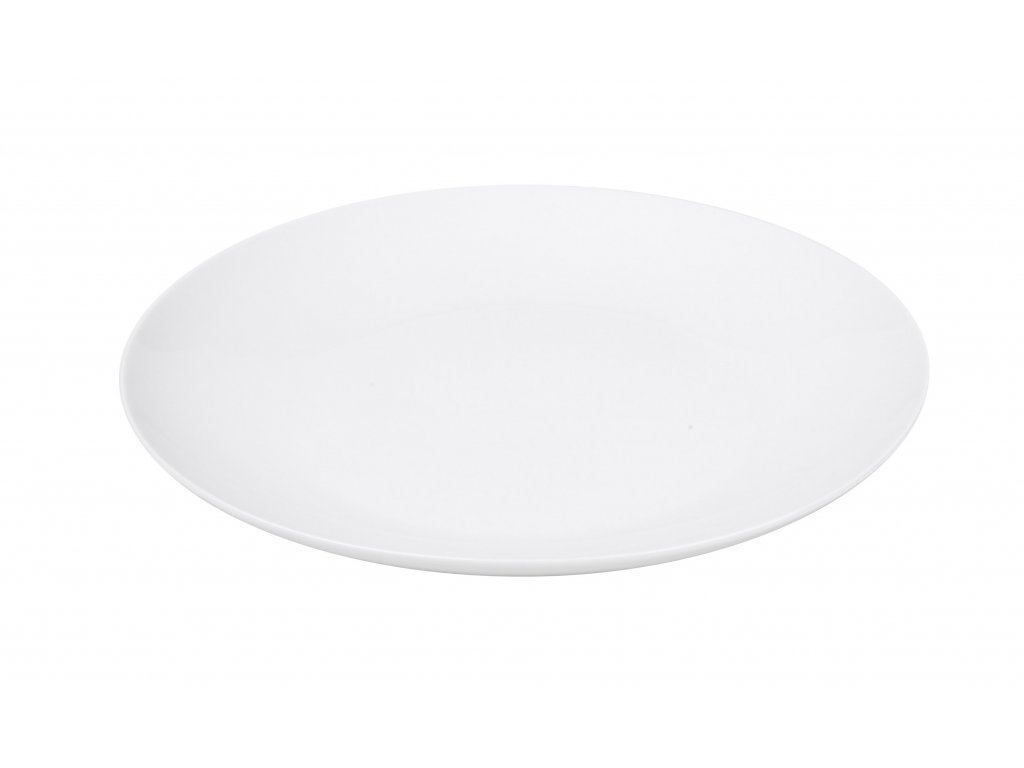 Porcelánový mělký talíř na hlavní jídla neboli mělký jídelní talíř o průměru 27 cm z kolekce porcelánu Classico v bílé barvě.
