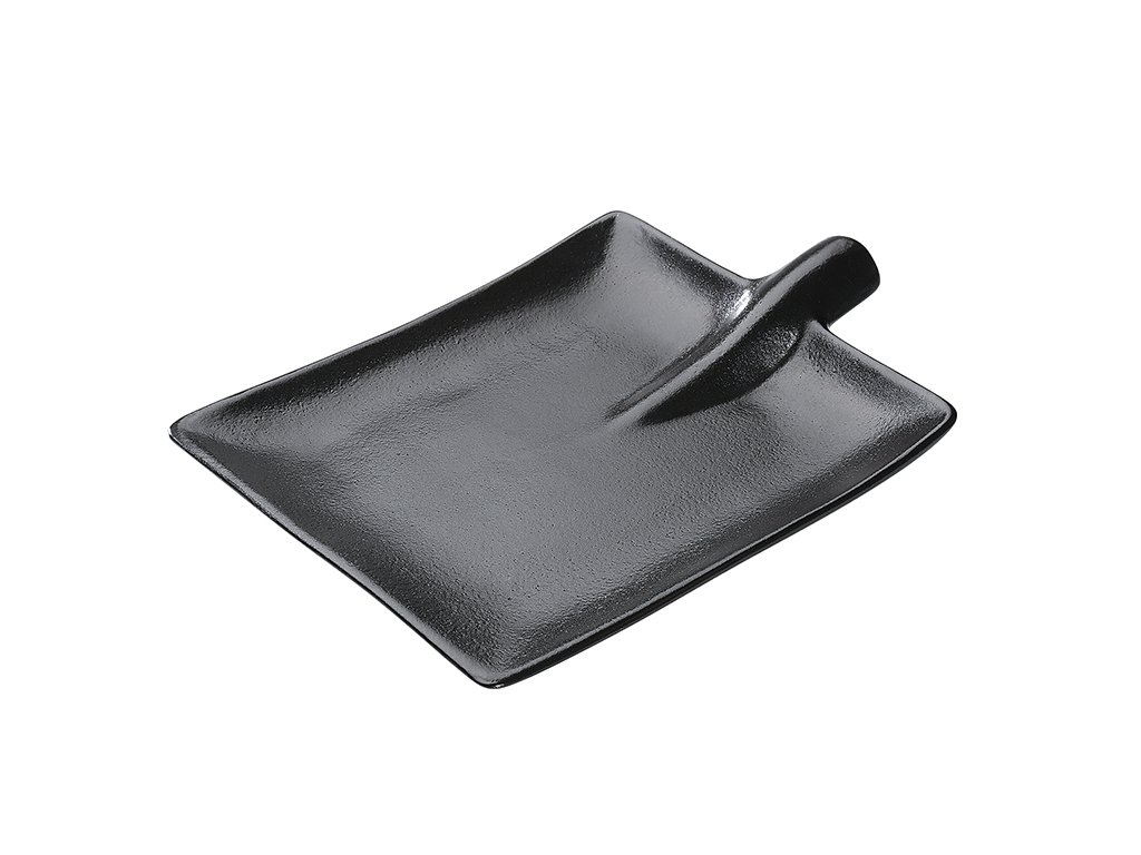 WORKER Keramický černý talíř ve tvaru lopaty o rozměru 25x18x5 cm od špičkové německé značky Zassenhaus.