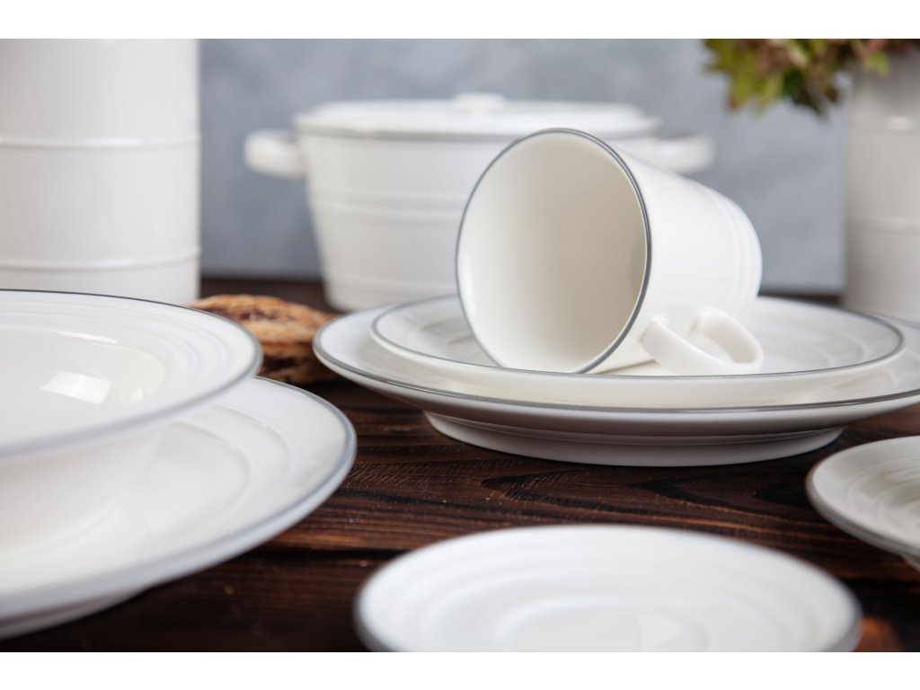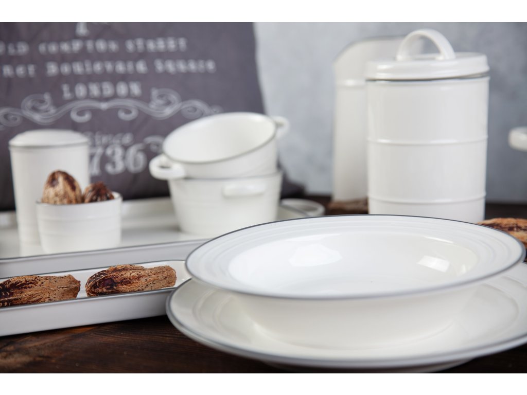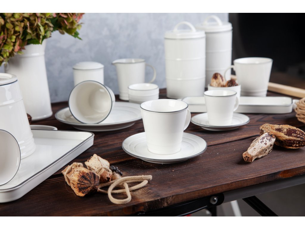 Kolekce porcelánu NOSTALGIE je designery české značky by inspire navržena v duchu návratu zpět v čase. Připomíná smaltované nádobí babiček přičemž kostní porcelán z kterého je vyroben mu dodává smetanový nádech a působí tak věrohodně a přitom vlídně. Jemný šedý proužek okolo jen zdůrazňuje křehkost a evokuje v nás retro tvar kovového nádobí.