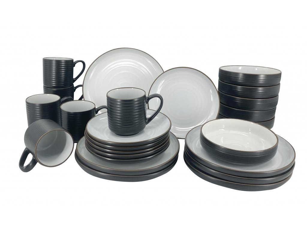 Kolekce keramiky NEGATIV je vyrobena z keramiky, která má stříkanou glazuru v bílé a černé barvě s hnědým okrajem. Můžete si vybrat keramický mělký jídelní a dezertní talíř. Polévková miska a hrnek tuto kolekci keramického nádobí krásně doplňují. Kontrast mezi vnitřním bílým povrchem a vnějším černým matným povrchem vypadá zajímavě a moderně, čímž dodává talířům jedinečnost. Bílá vnitřní část keramického nádobí je je jemně kropenatá, vnější černý povrch je zdoben zvlněním. Keramika má jemně nepravidelné okraje, které jsou zvýrazněny hnědou okrajovou barvou. Všechny talíře a hrnek jsou vyrobeny ručně, proto můžou mít jiný odstín. Každý kousek je originál. Tímto keramickým nádobím ohromíte každou návštěvu. Jsou vhodné pro každou příležitost, oceníte je při každodenním stolování, ale ohromí i při slavnostní příležitosti. Talíře i hrnek lze zakoupit také jednotlivě, ale také jako jídelní sadu nádobí pro 6 lidí - sada 24 ks.