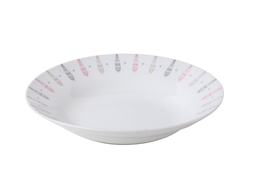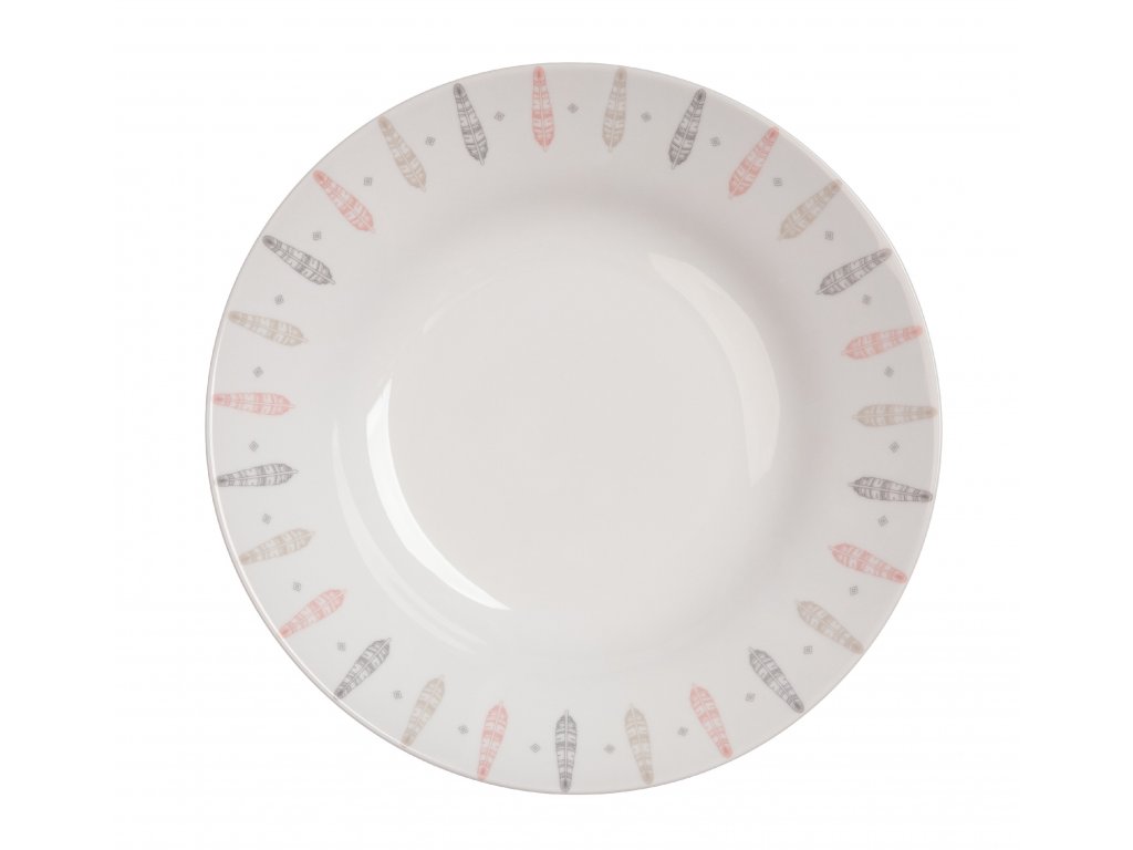 Porcelánový hluboký polévkový talíř o průměru 22 cm v bílé barvě veselým motivem pírek z kolekce porcelánu PÍRKA.