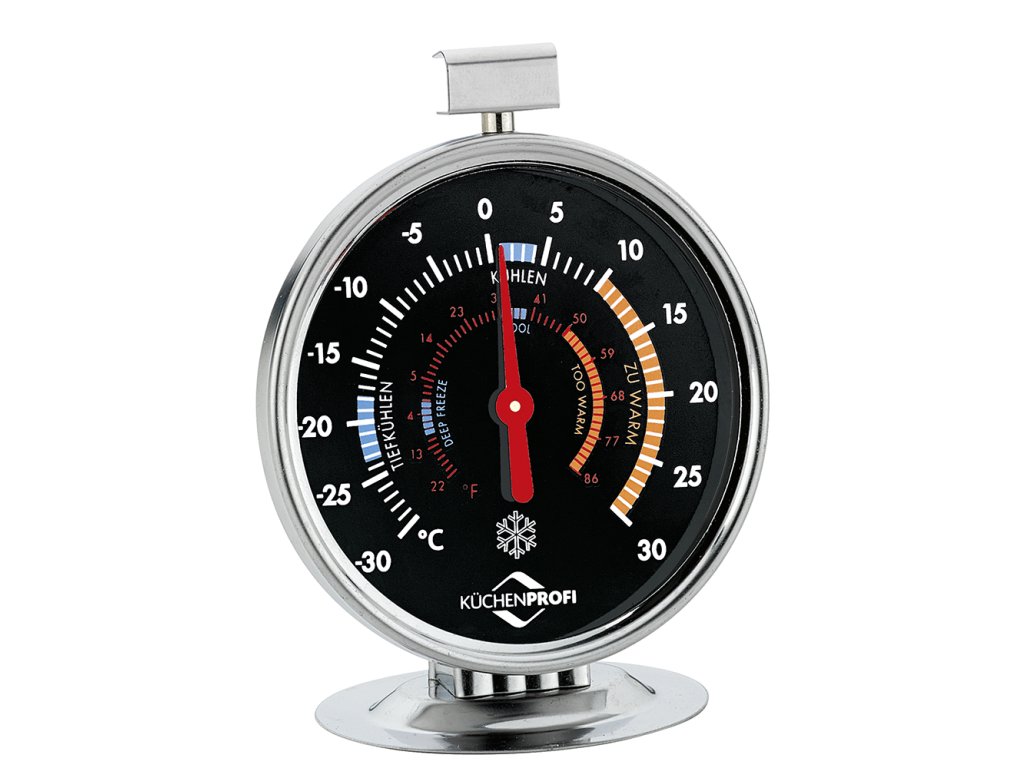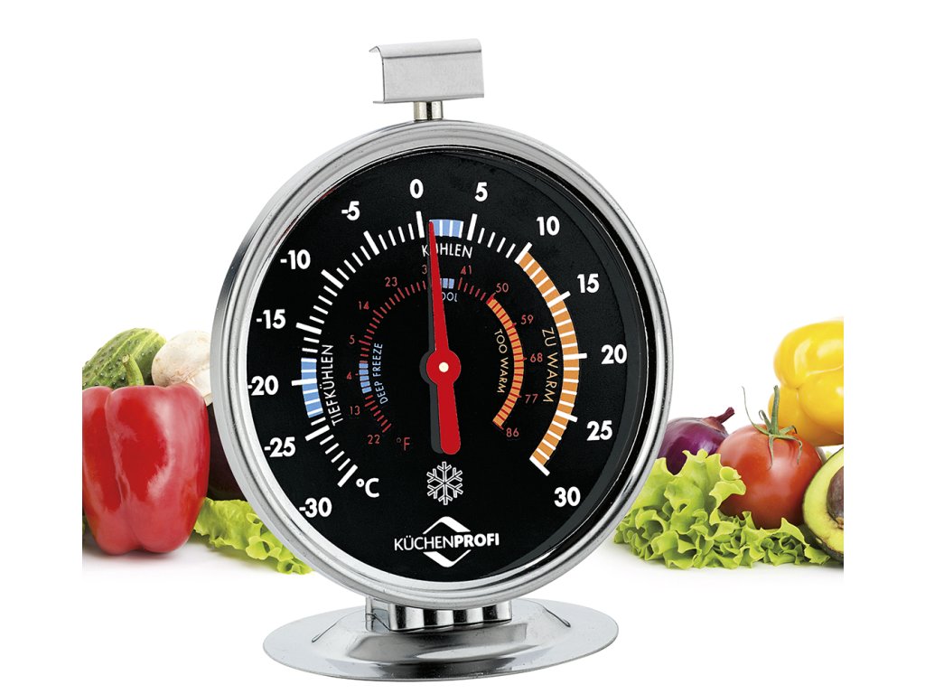 Kvalitní teploměr do mrazáku i lednice od Küchenprofi spolehlivě hlídá teplotu. Tímto způsobem můžete zajistit, že potraviny ve vaší ledničce budou vždy správně chlazeny. Správná teplota pro lednici je 4 °C. To samé samozřejmě platí i pro mrazák, kde by optimální teplota měla být -18 °C.