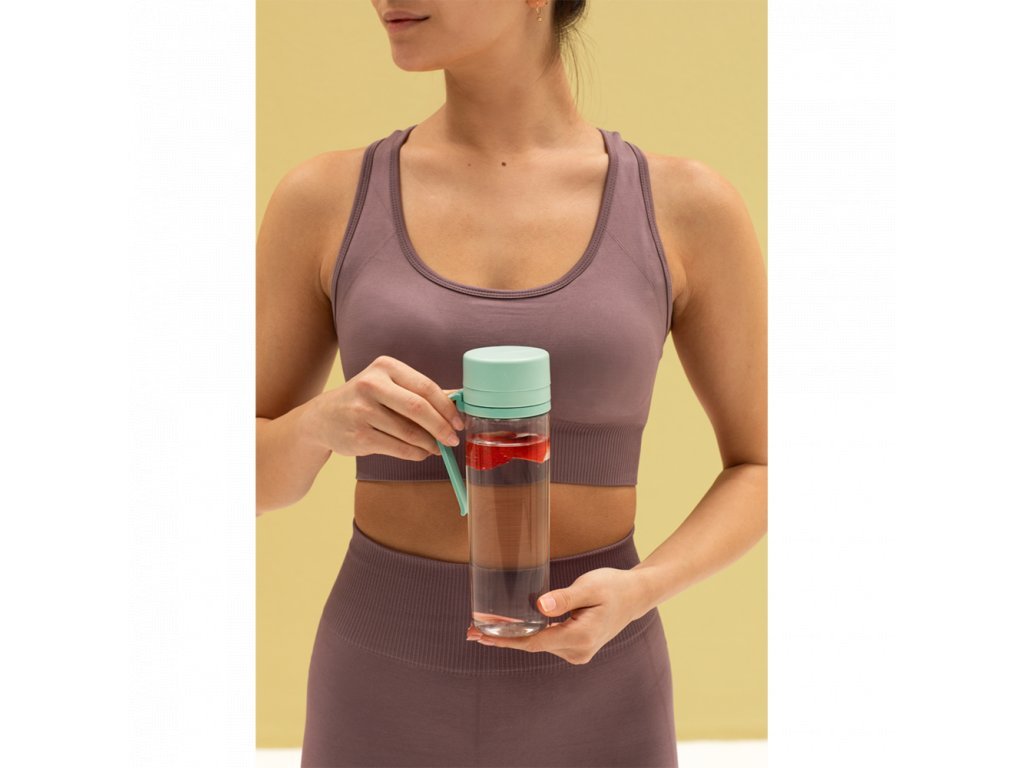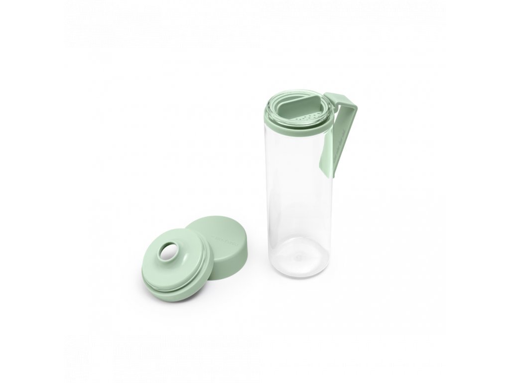 Nefritově zelená láhev na vodu má objem až 500 ml a ve šroubovacím víku se nachází sítko, díky kterému ovoce zůstane v láhvi a nebude vám překážet při pití. Na boku se nachází rukojeť nejen pro snazší držení, ale i sušení dnem vzhůru. Je praktická a čistitelná v myčce. Plast, ze kterého je láhev vyrobena, je odolný a má dlouhou životnost (záruka 5 let).