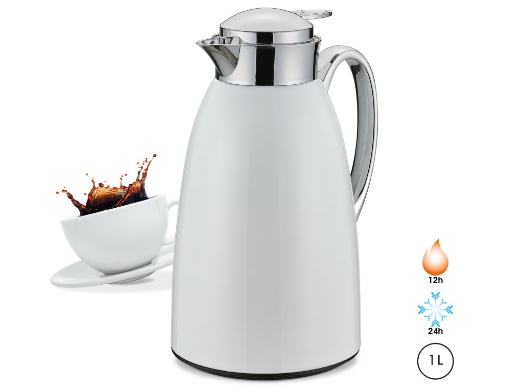 Termo džbán TRIESRT v matné stříbrné barvě o objemu 1 l na teplé nebo studené nápoje od špičkové německé značky Cilio.