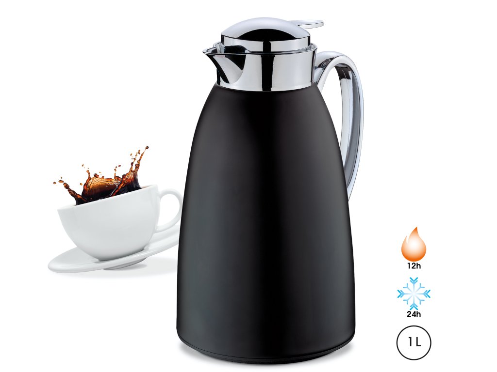 Díky termo konvici VENEZIA o objemu 1 l si můžete vychutnat svůj oblíbený nápoj při správné teplotě. Udrží kávu nebo čaj horký až 12 hodin, domácí limonáda na pikniky zůstane chladná až 24 hodin. Džbán se šroubovacím uzávěrem je vyrobený z matné nerezové oceli, uvnitř je tepelně odolná vložka z tvrzeného skla.