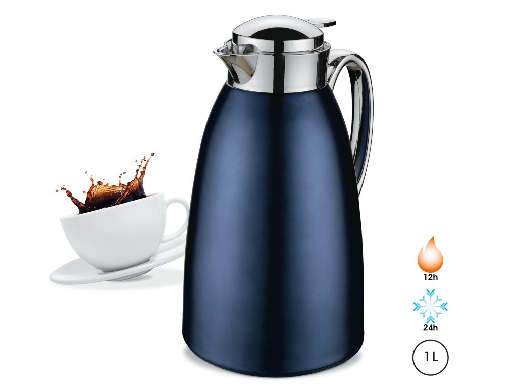 MONZA Klasická modrá termoska ve tvaru džbánu o objemu 1 l od špičkové německé značky Cilio pro každodenní používání.