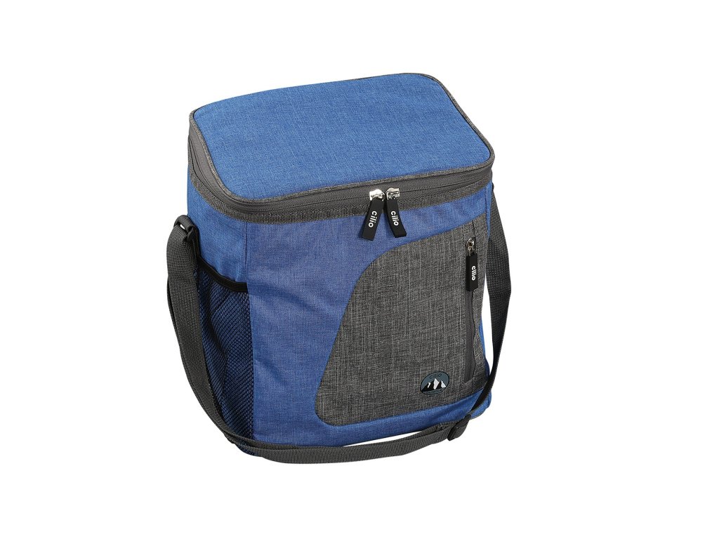 CORTINA Modrá termotaška na uchovávání nebo přenášení potravin a nápojů o objemu 13 l a rozměrech 27,5x20x25 cm. Je vyrobená z odolného polyesteru a pěnové folie. Izolační fólie uvnitř zajišťuje, že nápoje i potraviny zůstanou chladné a chutné několik hodin. Termotaška má nastavitelný popruh, můžete si zvolit, jakou chcete délku a disponuje jednou boční kapsou ze síťoviny na boku a přední kapsou na zip.