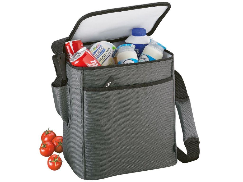 DOLOMITI termotaška na uchovávání nebo přenášení potravin a nápojů v šedo-stříbrné barvě udržuje teplo i chlad. Je vyrobená z odolného polyesteru a pěnové fólie. Díky vynikající tepelné izolaci termotašky vydrží potraviny čerstvé, ať jsou teplé nebo studené. Objem: 12 l. Rozměry: délka 27 cm, výška 30 cm, šířka 17 cm.