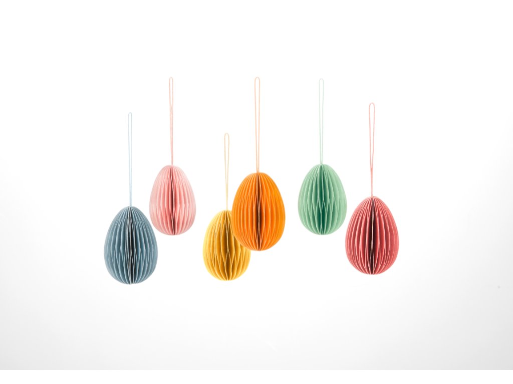 Používá se hlavně v interiéru, protože tato roztomilá papírová vajíčka stejně nechcete nechat venku na dešti. Skládaný vzor vytváří fascinující povrchovou strukturu světel a stínů.