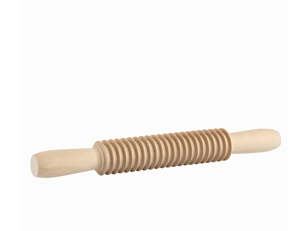 Dřevěný váleček na výrobu nudlí, fettuccine o šířce 7 mm, podávají se zejména s omáčkami nebo jen tak s rajčaty. Celková délka válečku je 31 cm a průměr 3,5 cm.